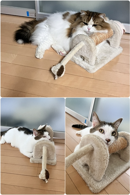 我が家のニャンコ達ですが、最近この姿でくつろいでいるのをよく見かけます。