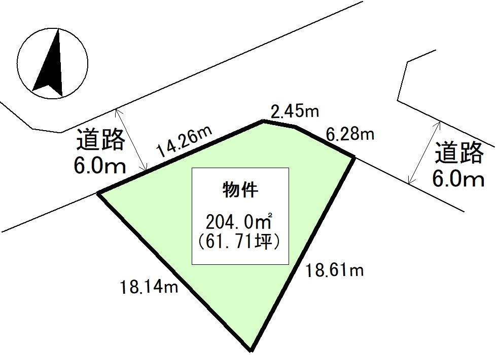 | 接道状況 | 角地 (北側 公道6.0m 間口14.2m) (西側 公道6.0m 間口8.7m) | ||