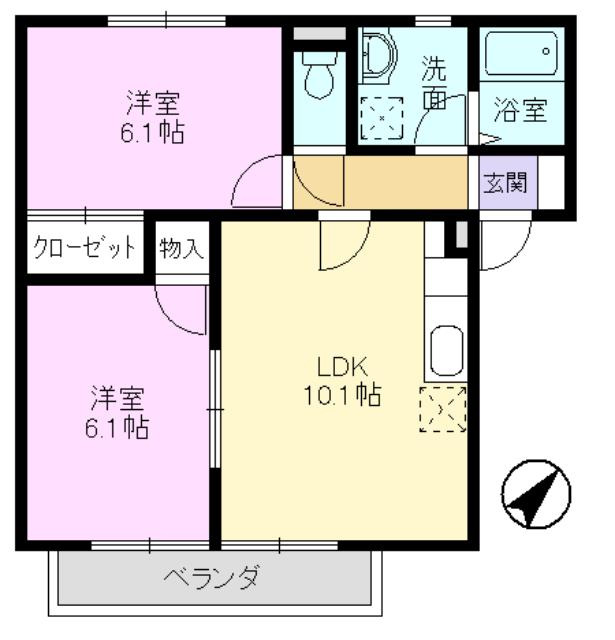 洋室 6.1帖 2室 / LDK 10.1帖 1室 / |