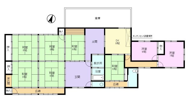 和室 8.0帖 4室 / 和室 6.0帖 2室 / 洋室 6.0帖 1室 / 洋室 7.0帖 1室 / DK 8.0帖 1室 / |
